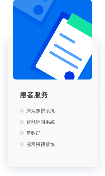 通過床旁交互終端,一屏打通住院場景,為住院患者提供全方 位住院信息服務,打造住院服務中心,讓信息服務無處不在,構建有溫度的住院病房。
